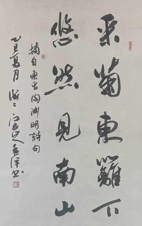 书法上其作品雄浑、大气,取法多方,博采众长,汲古出新,独创一格,雅俗共赏。作品多次获奖入展,受到国内国际众多书法艺术爱好者亲睐及收藏。2016年中罗文化节被以国礼赠送给来华外国友人代表,作品并被罗马尼亚文化中心永久收藏。