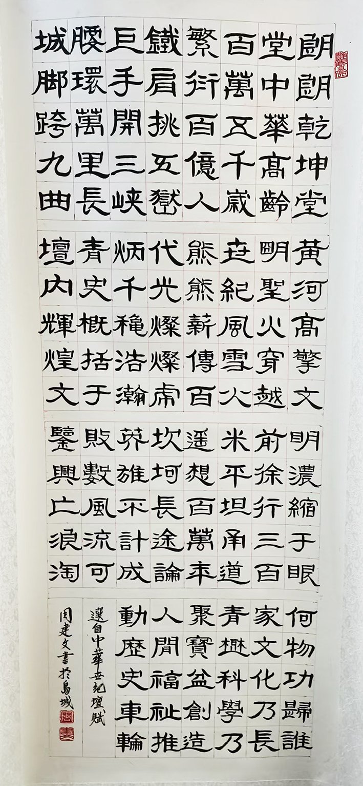 周建文,男,47年生于青岛市,山东莱州人,大专学历,国家一级书法师,高级政工师。曾先生师从著名书法家,篆刻家张承宗,于宁,孙永誌,翁颖伦,姜勇伉等学习书法篆刻。其作品曾经荣获《纪念中国共产党成立85周年书画大赛》金奖,并被授于"中华杰出艺术家‘’称号;全国纪念陶行知先生诞辰110周年《万世师表书画集》大赛銀奖;首届全国中老年书画大赛佳作入圍奖;第四届全国老年书画大赛中获特别荣誉奖;被评为全国优秀会员。作品曽入选《梦想中国,美丽世园》全国精品展,并被组委会收藏。2015年参加《廉政中国暨第三届大型廉政文化书画精品展》和2017年《第四届中国廉政文化书画展》被评为优秀奖;2019年参加庆祝建国70周年暨首届《蒲松龄杯》全国书画印大赛中获金奖,并被授于\\建国华诞70周年功勋艺术家∥称号。2020年第一届《圣海杯》全国精品书画印大赛中获金奖,被授于"当代实力派艺术家‘’荣誉称号。山东省第二届第三届老年书画美术大赛分别获优秀奖等等。并擅长篆刻。現为:中国廉政行为研究会园画院会员,中国书画家协会会员,中国孔子诗书画研究院院士,中国廉政行为研究会书画院山东分院书画客座教授,第六届常务副院长兼秘书长,青岛市老年书画研究会名誉副会长,市北北分会会长,青岛市书法家协会会员,青岛市上四方书画院院长。