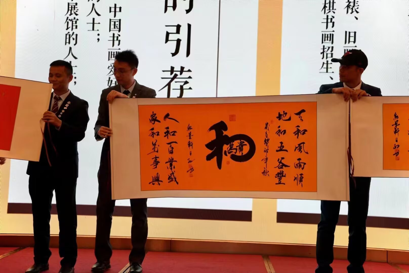 是全国厨师书法家协会理事、中国翰林书画院院士、广东省云浮市书法家协会会员,也是广东广播电视《每周星厨》之星。他曾被评为全国“秦韵杯”书画大赛最佳潜力奖,并在多次全国书画大赛中获奖。覃日红的书法作品风格崇尚自然流畅,融汇古今,擅长楷书、行书、草书、隶书、篆书等多种书体,兰亭杯书画展代表作品包括《和为贵》《长寿》《禅心》《茶道》《酒喻岁月》《山高人为峰》《风生水起》…等多幅作品