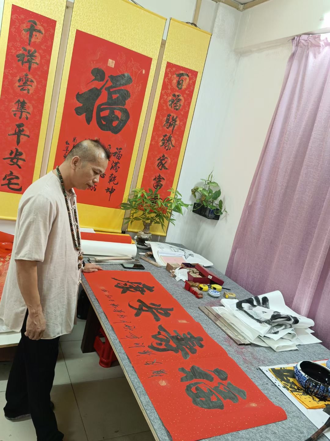 覃日红书法家,字:兴旺)2016年创办了红墨轩书法工作室,是广东罗定人,自幼爱墨,勤练苦拙,临摹名家,后深得本门覃家名家兄长指路才方得至今成就,