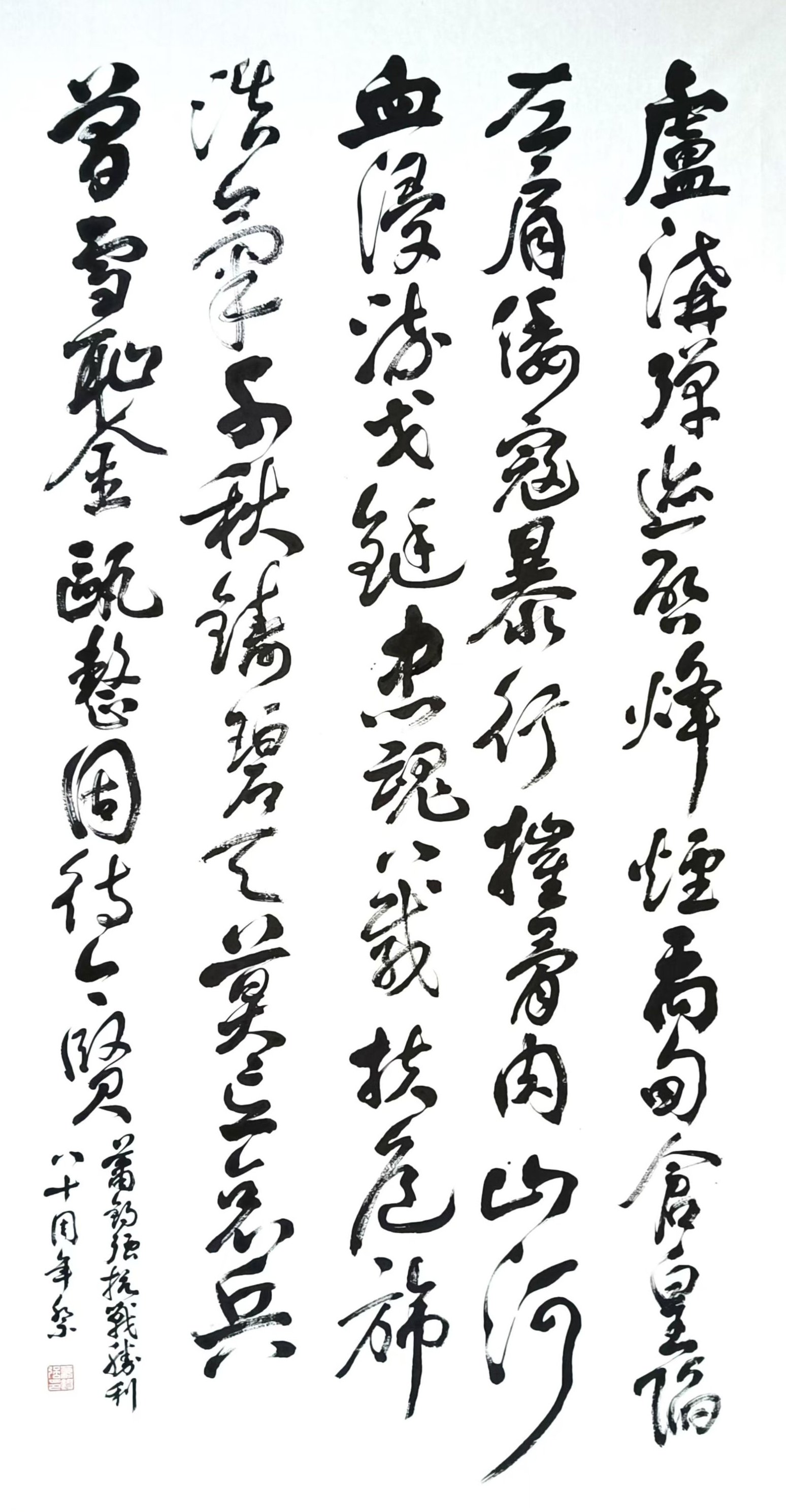 自作诗 《七律.抗战胜利八十周年祭》 萧锡强 行草 六尺整张