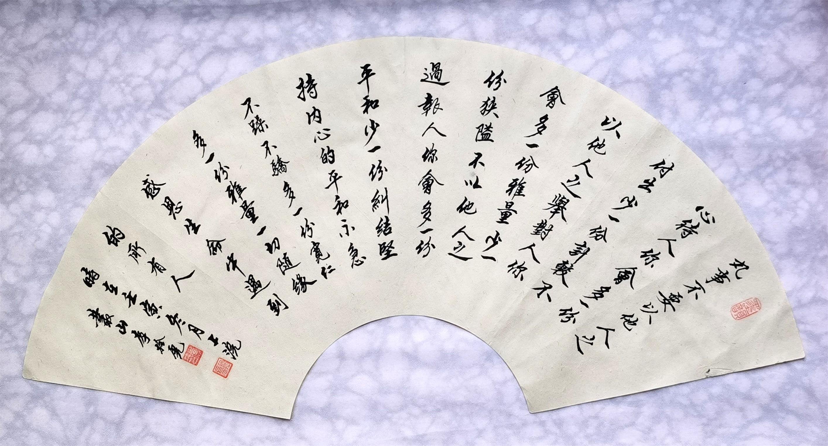 一生酷爱书法,对传统书法艺朮有崇高的追求,工作之余坚持临习"二王",颜,柳等古人法帖,工习唐楷,退休后亦参加省、 市各类书法学习班学习,使自己的书法技艺不断提高。书法作品曾在陕西烟草系统 2014 年.2018 年.2020 年各类书画展中获二、三等奖,2018年在咸阳市秦都区首届书法临帖展中获老年组三等奖,2015年.2018年在关天经济区第三届.第五届老年书画联展中获书法二等奖.优秀奖,2016年在宁夏西吉县将台堡纪念红军胜利会师80周年陕甘宁书画大展中获优秀奖,2020年书法作品在湖北武汉"风雨同舟杯"全国书画大赛中获二等奖,2019年在《中国书画导报》举办的全国扇面书画艺朮大展中荣获铜奖,2019 年书法作品被《中国书画导报》录入中国老年书画家名录(2018版)和中国书画名家代表作年鉴(2018卷),并被聘为(2018版)编委,2021年参加第十届全国民间精品书画大赛获银奖,在2022年参加第十一届全国民间精品书画大赛荣获特等奖。书法作品被北京通天彻地文化艺朮中心录入文化艺朮人才库,部分书法作品被北京中央新影出版社和宁夏六盘山红军长征红念馆、中国杨凌"丝路杨凌"老年书画联展、陕西省弘扬汉文化研究中心等单位入选或收藏。